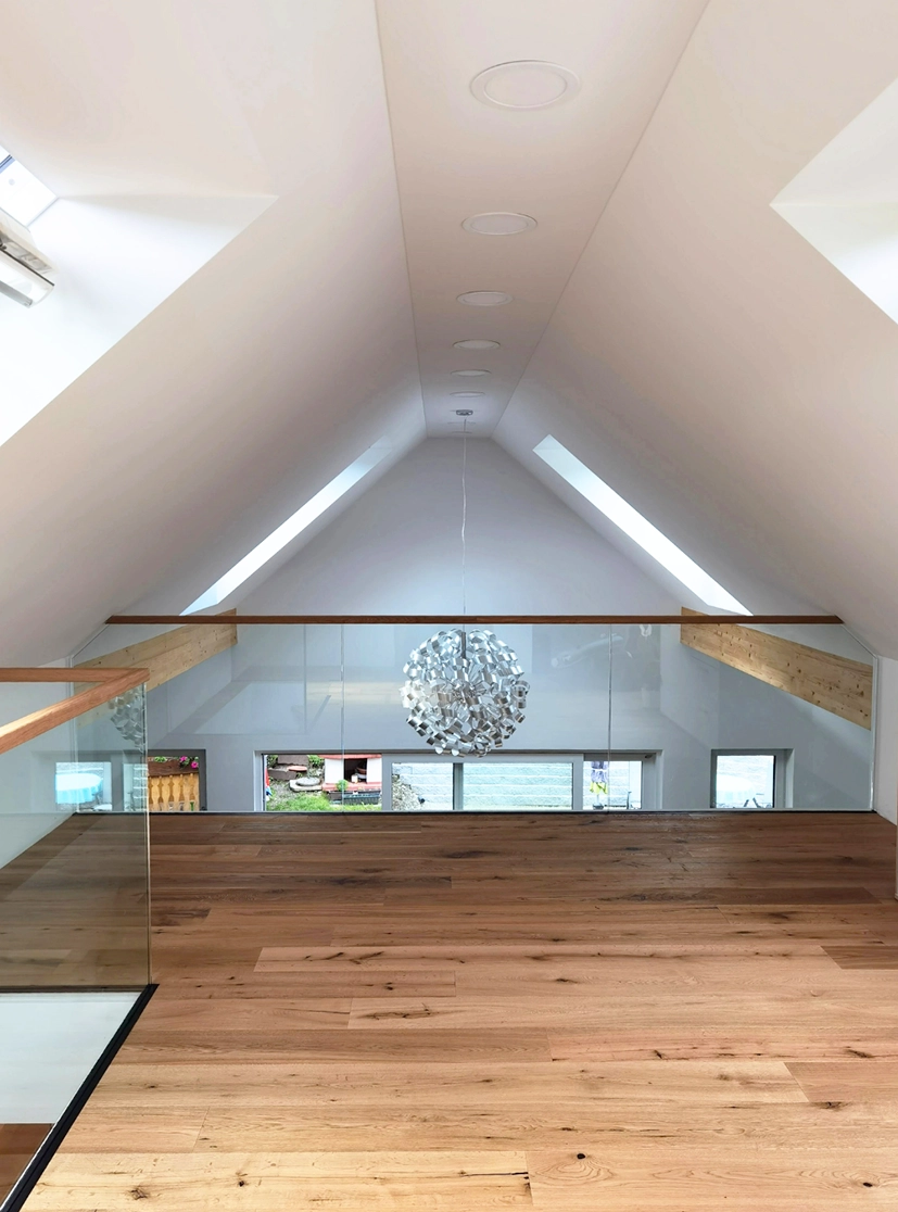 Genießen Sie ein besonders offenes Wohngefühl durch eine Konstruktion, die ohne seitliche Holzbalken auskommt und so viel Licht in Ihren Flur lässt.